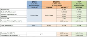 (***) Per le offerte «SOLO20» e «SOLO40» viene utilizzato un terminale POS Desktop Ethernet; eventuali richieste di altro modello di POS verranno gestite con una tariffa diversa.